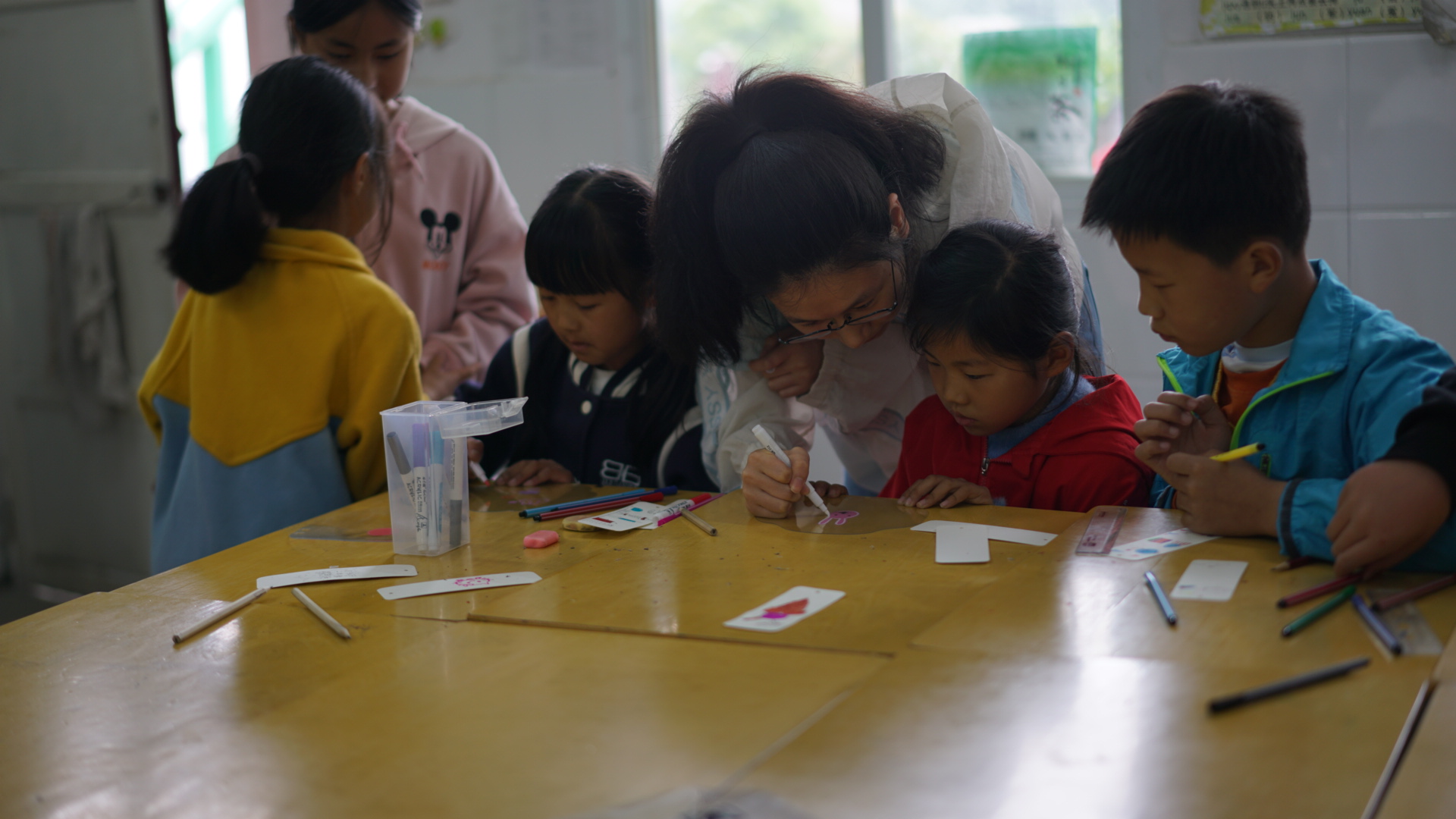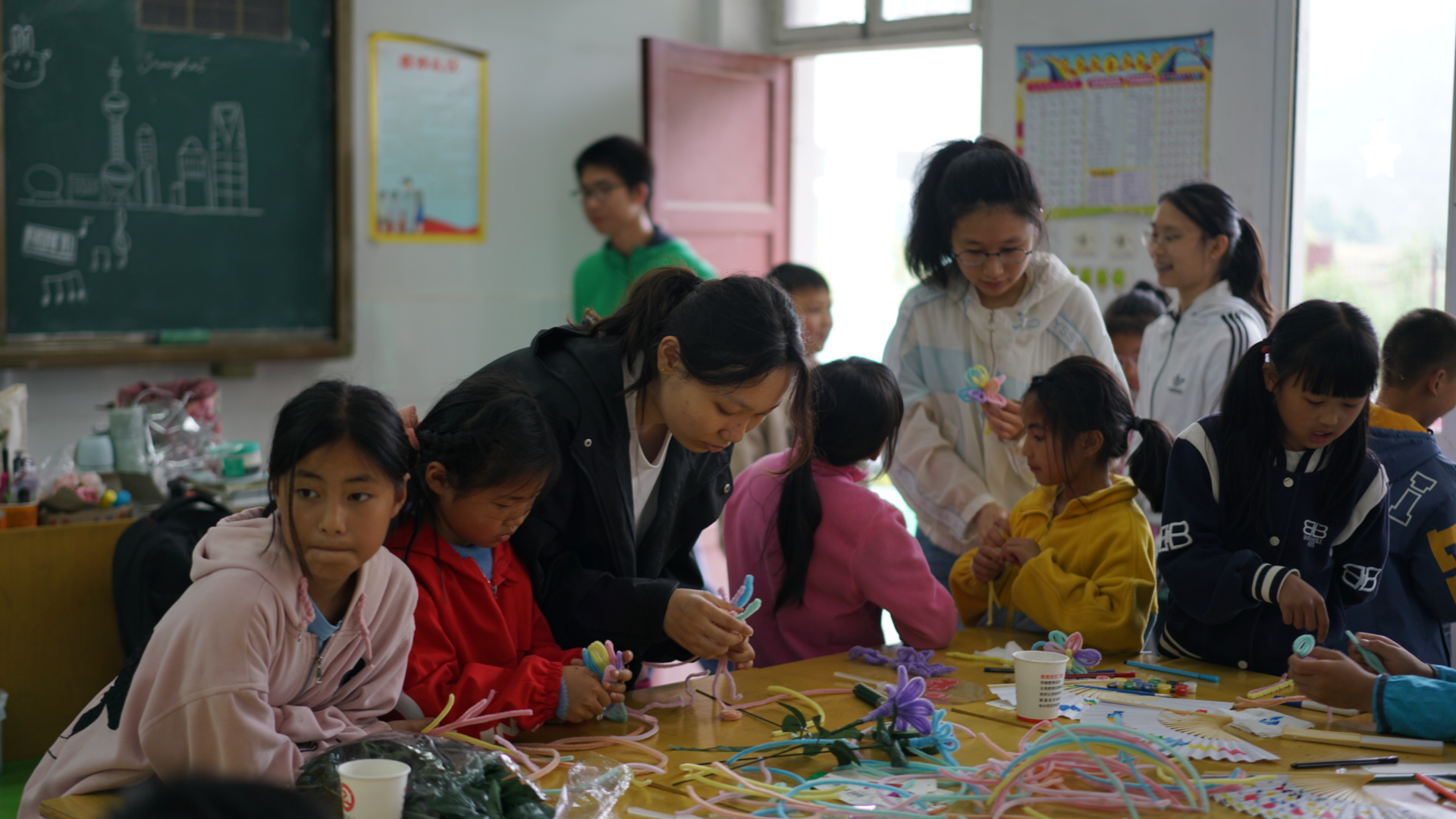 Club members giving handicraft classes for students at Menshan Teaching Point